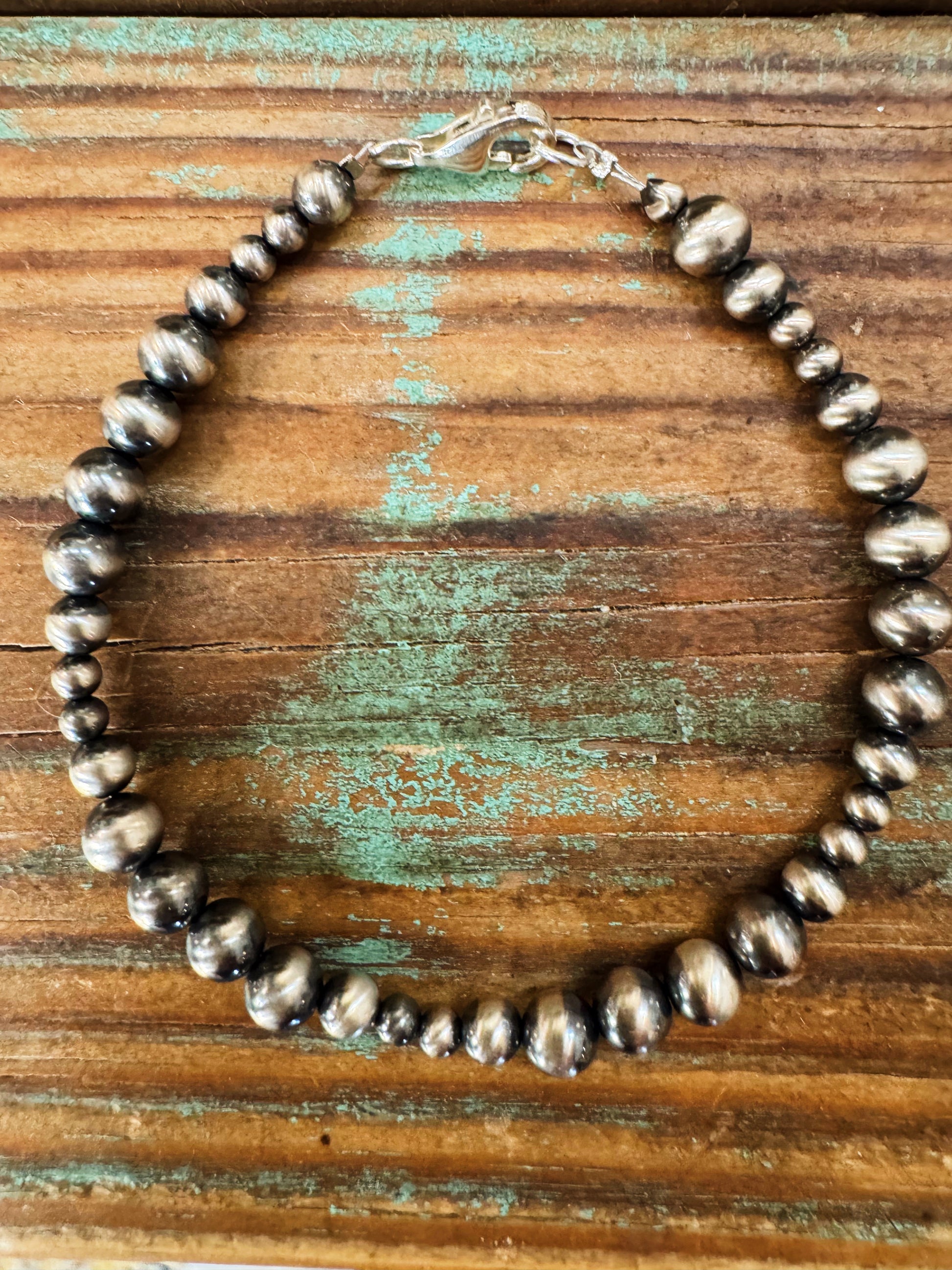 Genuine sterling beads, “Navajo Pearl” style. Approximately 6.5” to fit smaller wrists!